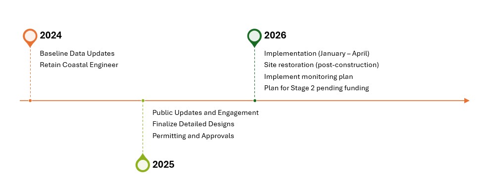 The project will take place in two stages; stage 1 will focus on the area west of the Love Crescent parking lot towards Lion’s Point, and Stage 2 will address the area east towards Veteran’s Point Gardens.