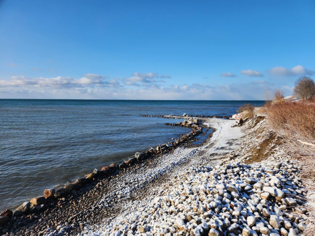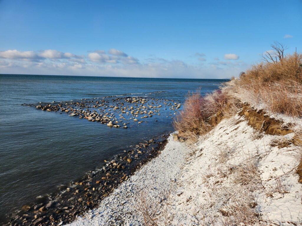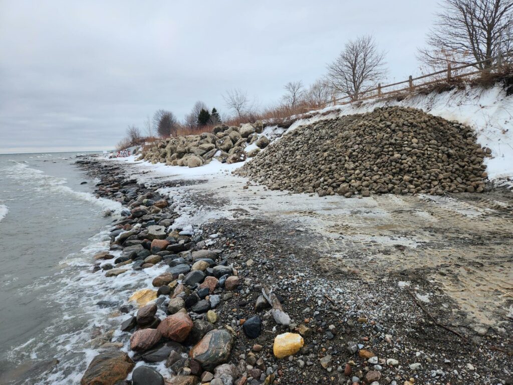 A “cobble and boulder shoreline” is a design that provides erosion protection through adding more stone material to the shore. However, the Ajax Shoreline Project is unique because the approach being used will allow waves to move and naturally direct where the stones go.