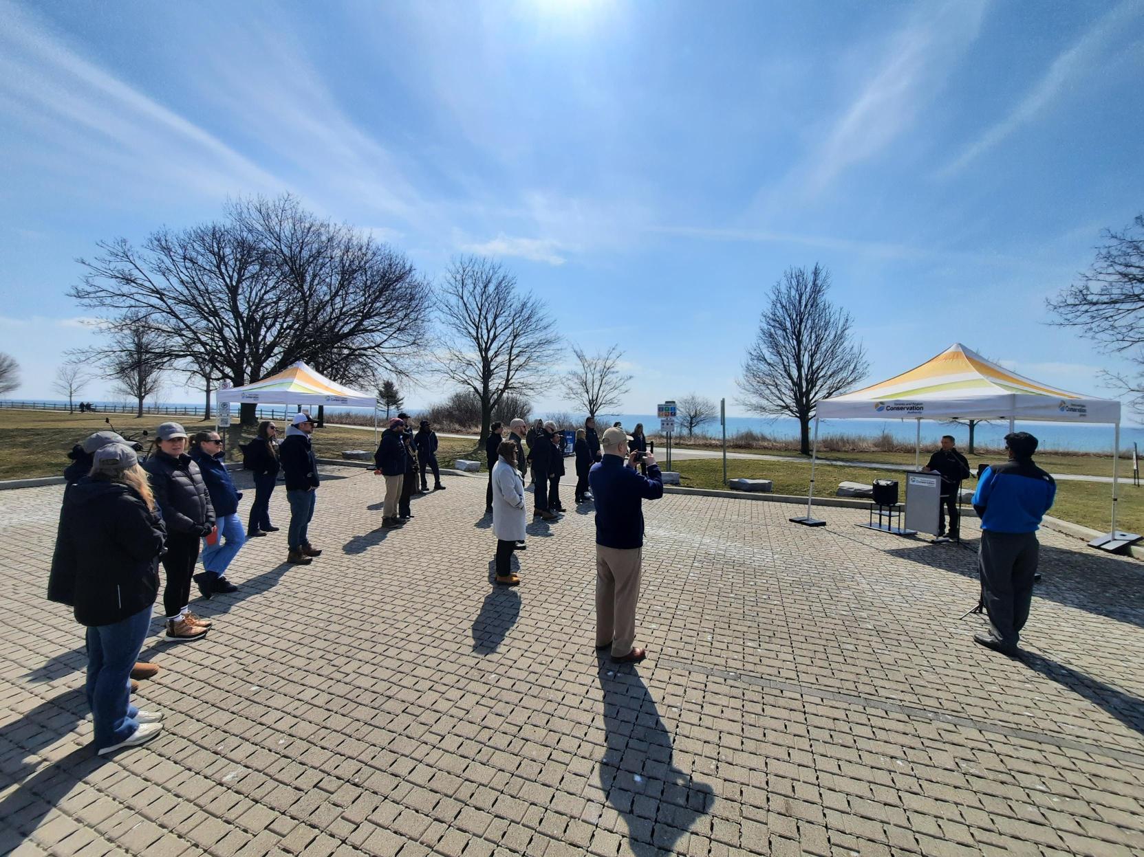 TRCA, in partnership with Canada Water Agency (CWA), met on site to recognize the progress made on the innovative Ajax Shoreline Project. Representatives from Town of Ajax, the Province of Ontario and the Government of Canada were all present along with the Project Team to celebrate shoreline restoration at Ajax Waterfront Park.