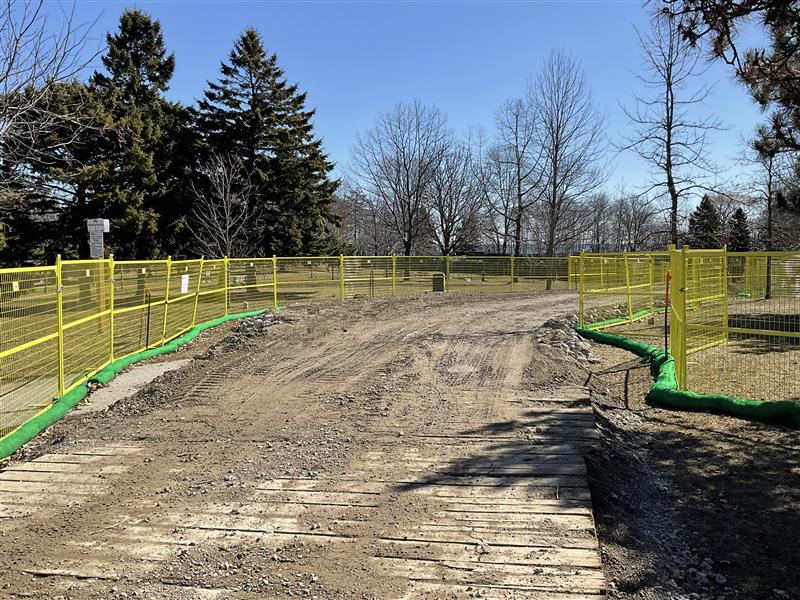 The work area and a section of park trail will be closed to accommodate construction access. Trail crossing points will be provided at key locations along the construction access route. Work will be advanced in phases to keep as much of the park open as possible until construction reaches each section.