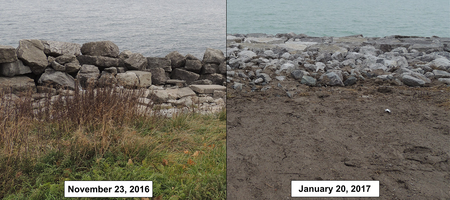 In May of 2017, Lake Ontario experienced record high lake levels, impacting many areas of the shoreline and causing further erosion to occur along the backshore of the beach.