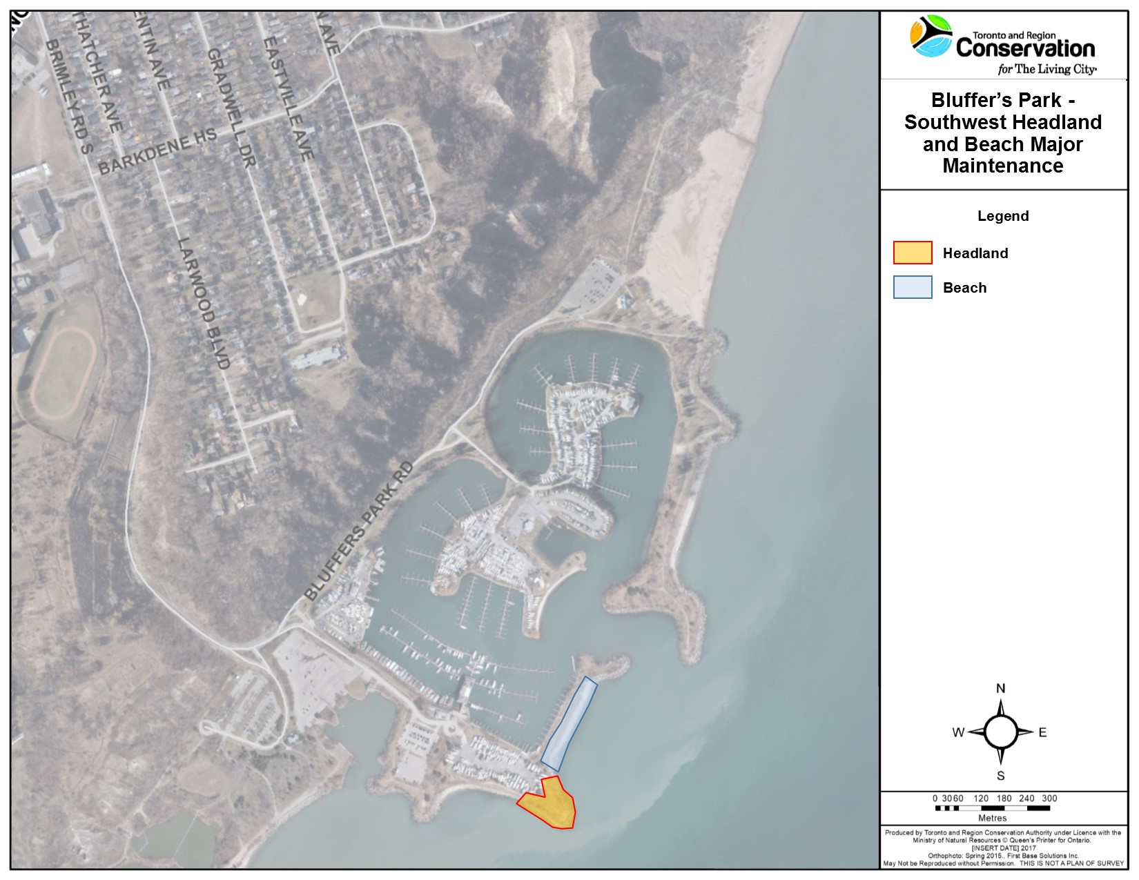 The Project Area is located in Bluffer’s Park at the base of Brimley Road South on the north shore of Lake Ontario, in the City of Toronto. The area of concern includes the southwest headland and adjacent beach located near Bluffer’s Park Marina.