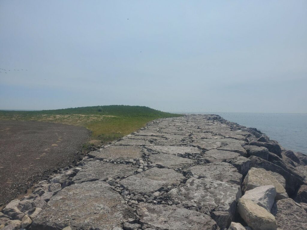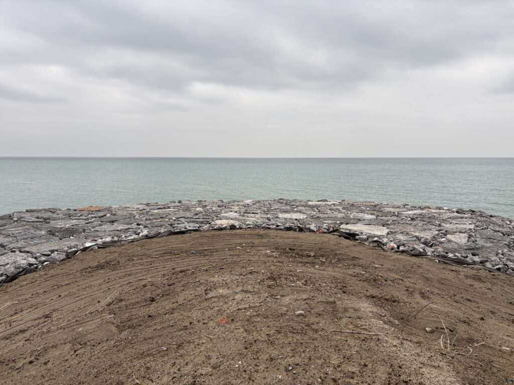 Through the Class EA process, the preferred solution for the headland was identified as the “Repair” option, which will include repair of the headland by filling existing voids with appropriate materials and capping the existing structure with a second layer of armourstone.