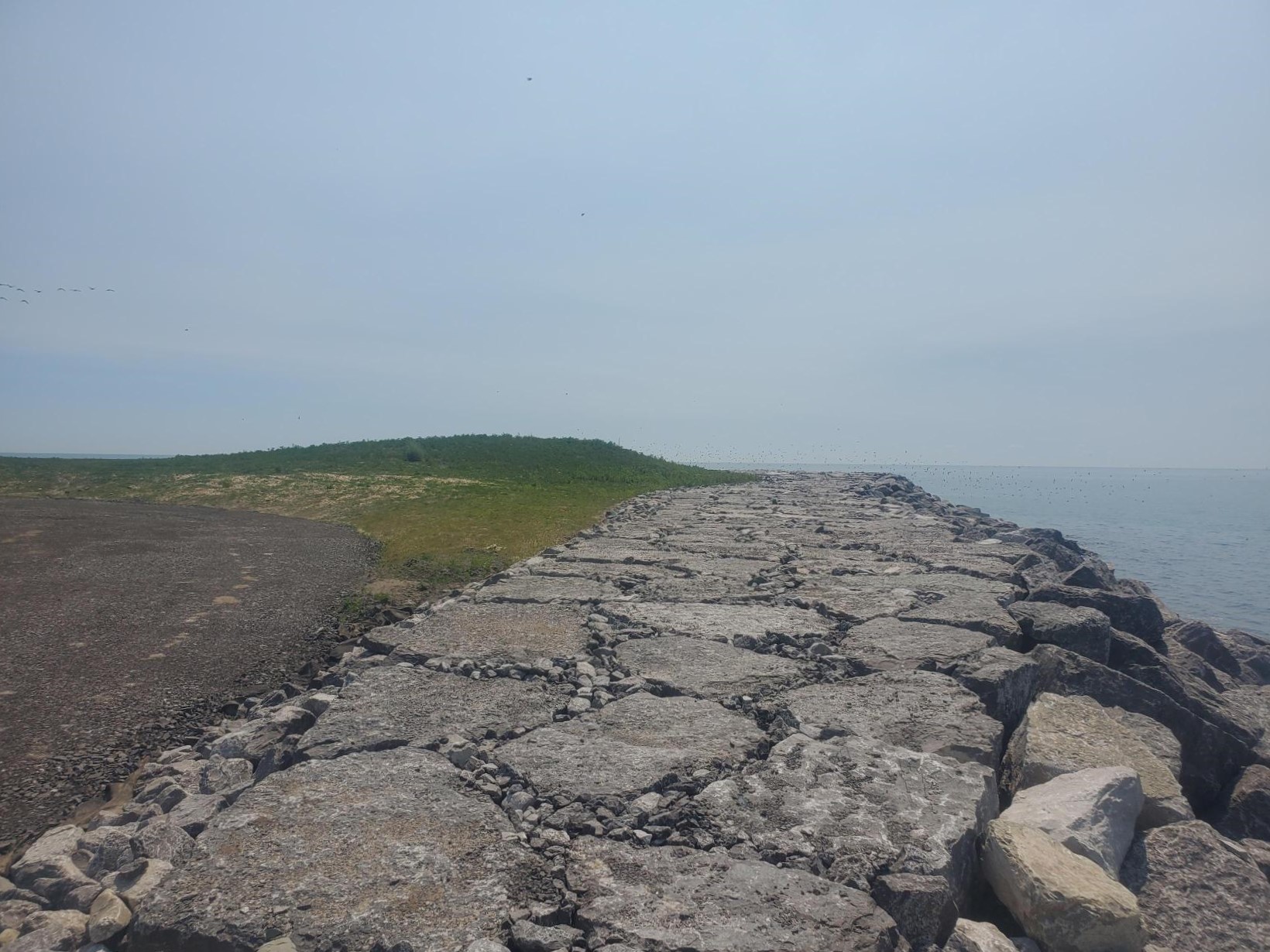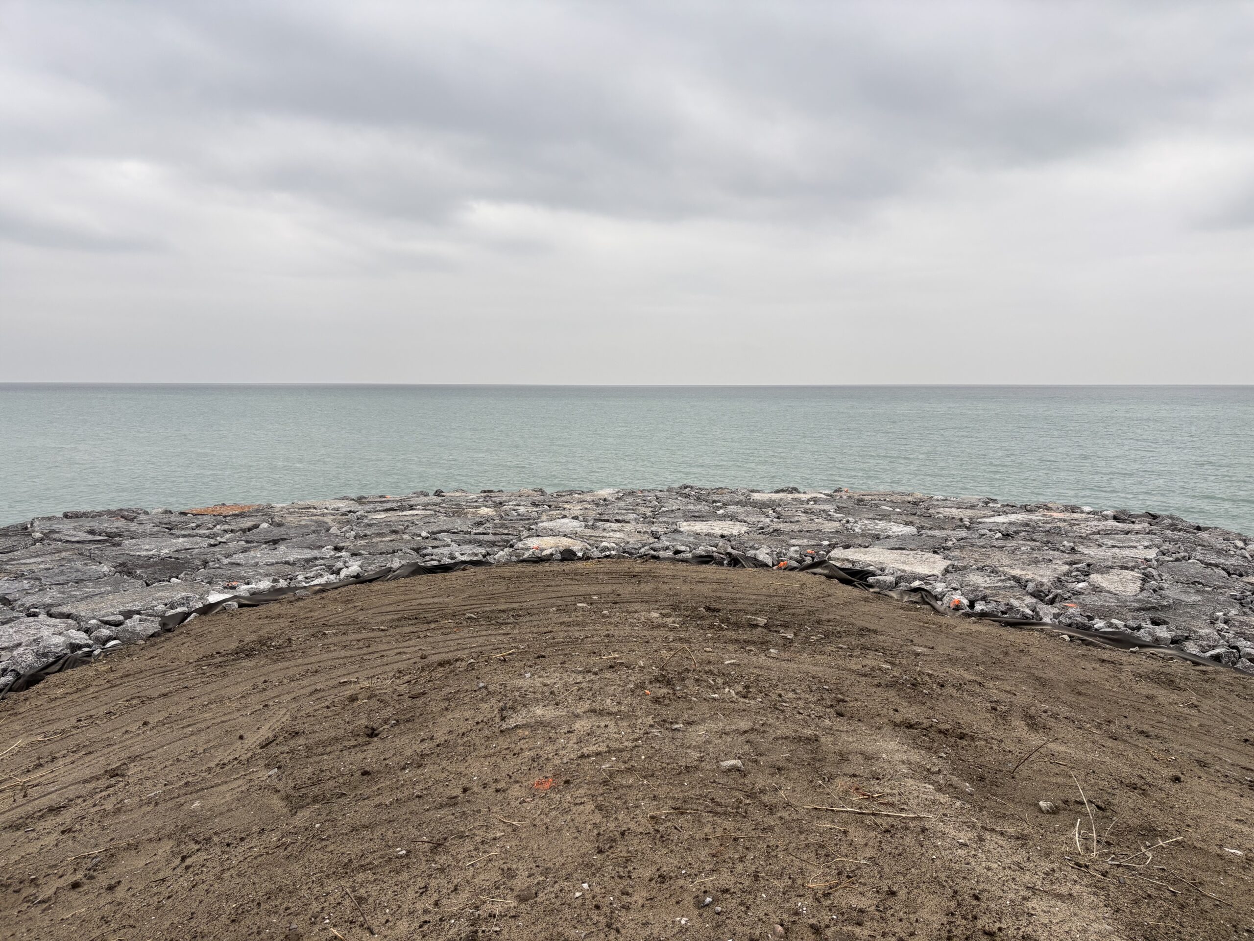 - Placement of armourstone toe material has been completed for the entire structure according to the detailed designs