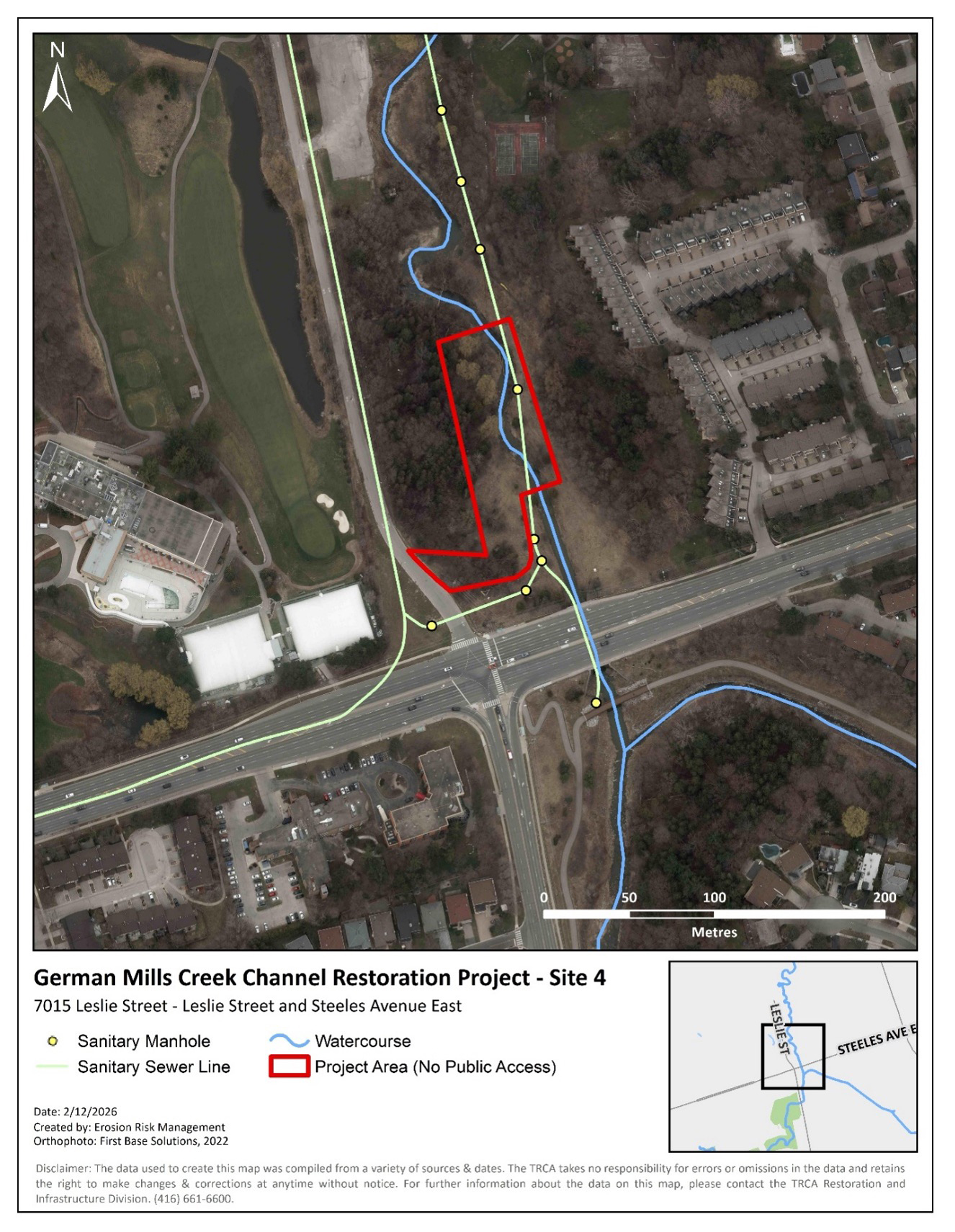 A map of the German Mills Creek Channel Restoration Project – Site 4. Source: TRCA, 2026.