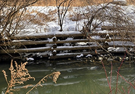 The existing crib retaining wall is failing and continued erosion is causing scouring of the channel posing a risk to sanitary sewer infrastructure.