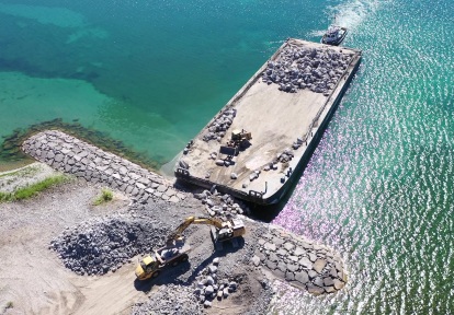 - Site preparation, including any necessary tree removals/protection, installing Erosion and Sediment Control (ESC) measures and construction fencing, creating staging/stockpiling areas and building temporary barge access docks on two of the headlands