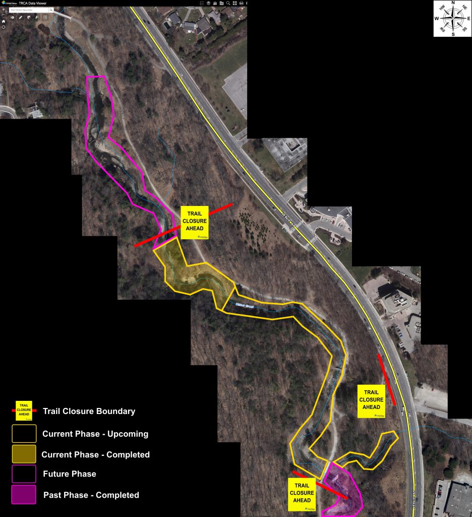 The trail in this area will currently remain closed on weekdays while heavy equipment is present to ensure public safety is maintained when the work is underway. Final restoration is anticipated to occur in late spring 2019.