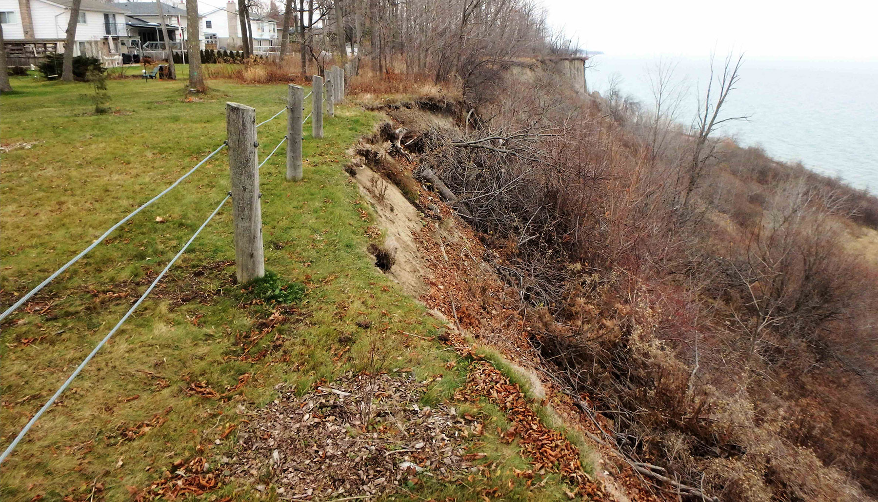 Downspouts discharging towards the ravine, grading of the landscape, or other factors can direct stormwater to the edge of a ravine or bluff and create gullies. There are multiple stormwater management techniques and low impact development measures that can help minimize these concerns. You can read more in this guide prepared by the Sustainable Technologies Evaluation Program.