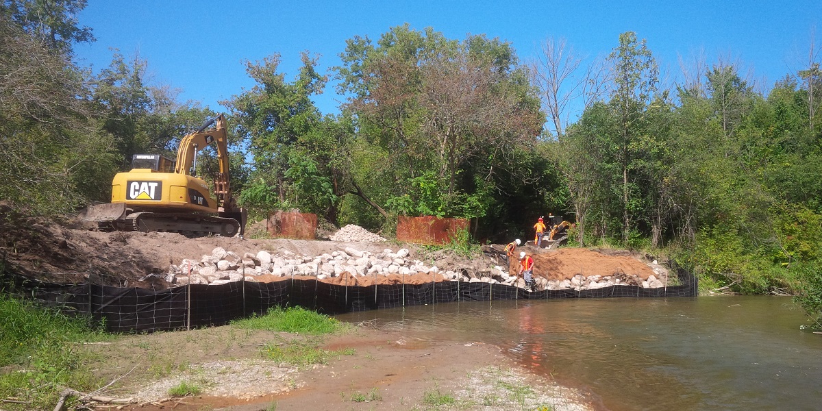 The Stream restoration work done by Toronto and Region Conservation Authority (TRCA) involves natural channel design*, bank stabilization, riparian plantings, and barrier removal (such as culverts, weirs, dams and online ponds) to facilitate fish and wildlife movement.