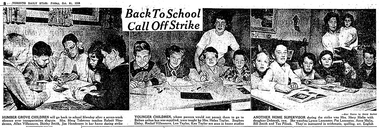 The community continued to flourish into the 1950s, as families turned their summer homes into year-round residences by installing furnaces and enrolling their children in school in Bolton. In 1958, the absence of school bus service to the area prompted several local mothers to establish a home school in protest. School trustees eventually relented, providing a portable housed at the corners of Duffy’s Lane and King Street. This was soon replaced by a more substantial brick building.