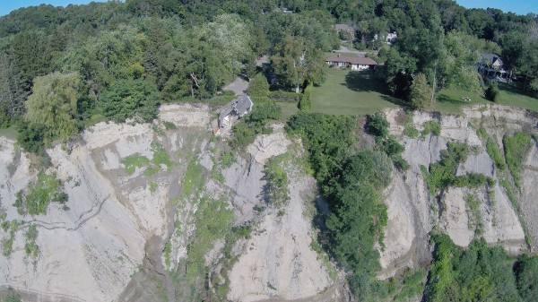 While bluff slope failure is a natural process that contributes to the character of the site, it becomes a hazard when human use of the shoreline is considered.