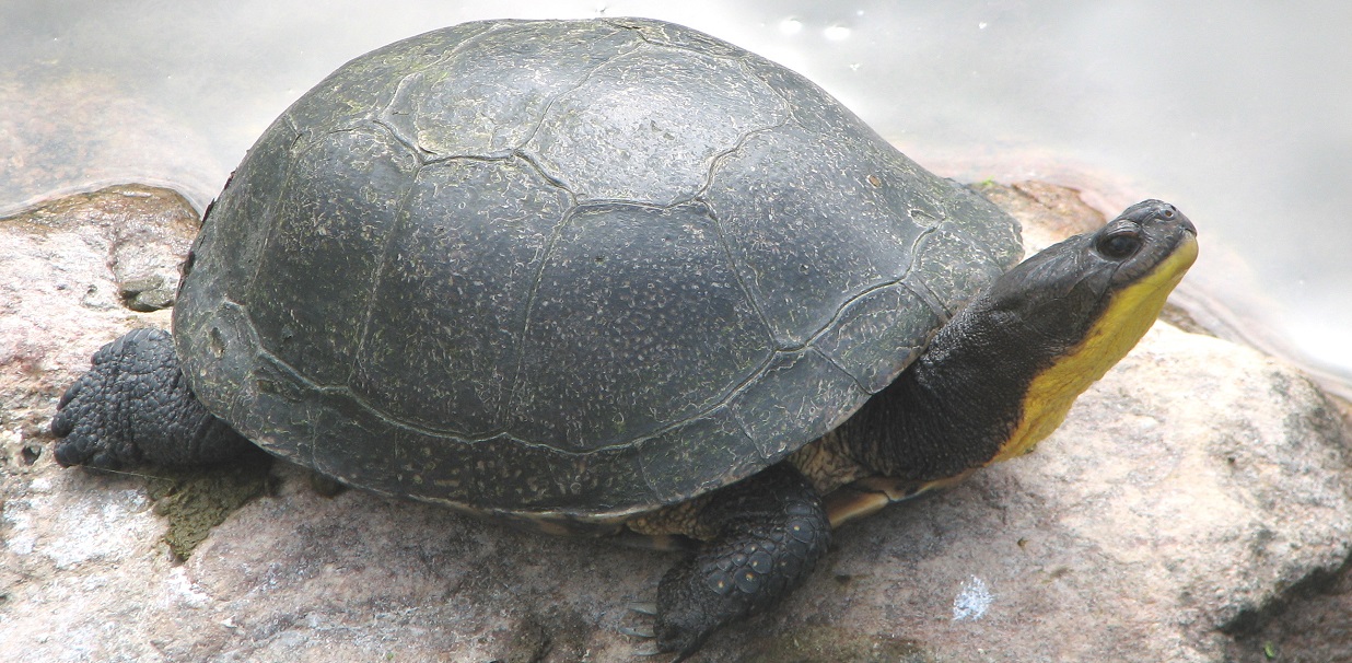 Blanding’s Turtle: The Blanding’s turtle is a true road warrior, traveling a greater distance each year than any other Ontario species, as it moves overland from summer nesting spots to overwintering habitat. Identifiable by its bright yellow chin and throat, the Blanding’s turtles is also unique among local species for feeding exclusively on land.