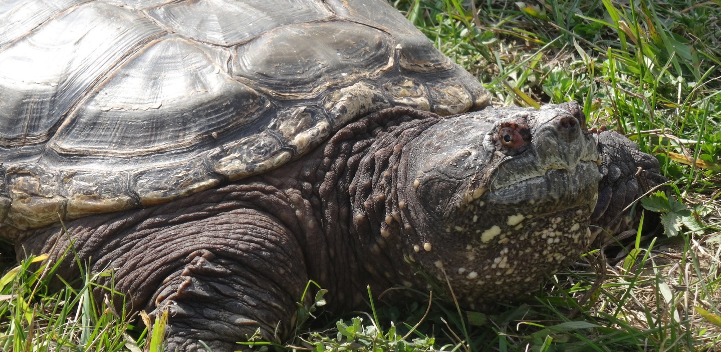 Snapping Turtle: If you’re looking for a glimpse into the prehistoric past, meet the snapping turtle: the triangular spikes on its tail are very Jurassic Park. It’s also the largest of Canada’s freshwater turtles, capable of growing up to 47 cm in length. The snapping turtle isn’t a great swimmer, so it can usually be found walking along the bottom of small ponds and rivers, or trundling across roads.