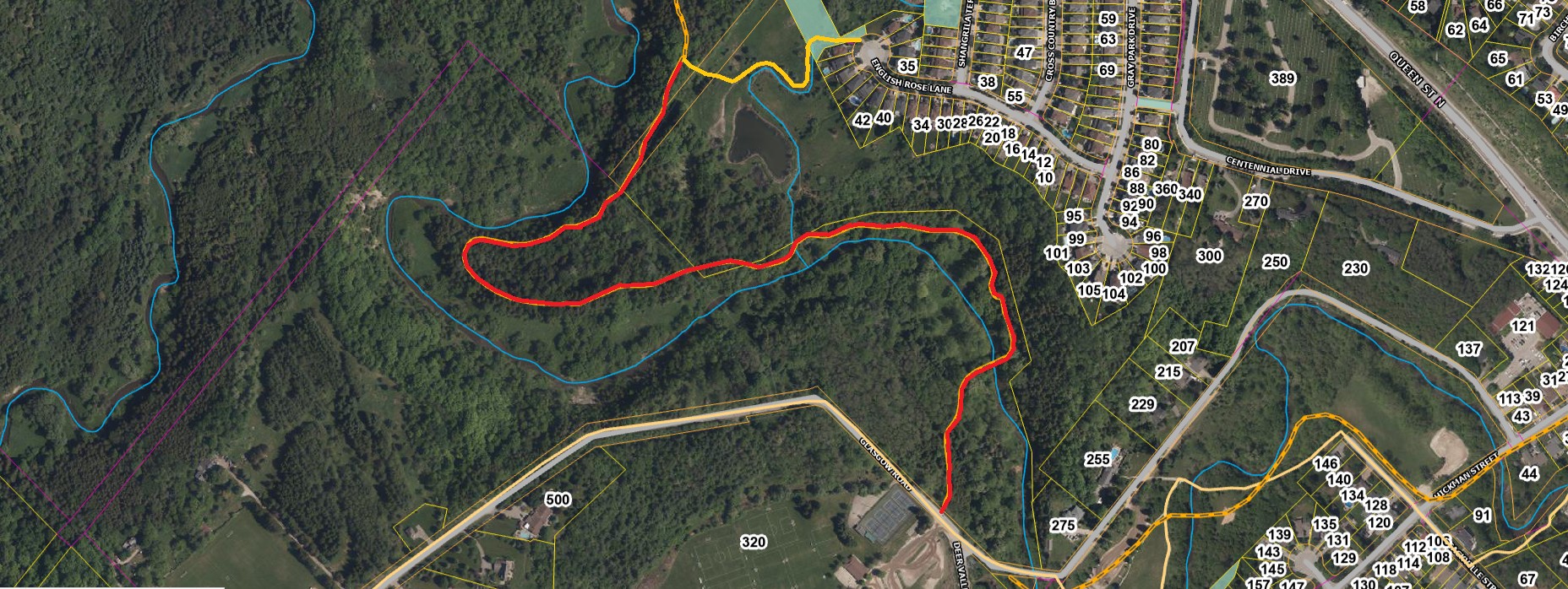 We are refurbishing a key Trail bridge on the Humber Valley Heritage Trail (HVHT) within the Bolton Resource Management Tract. The works are due to start Feb 2nd ( WEATHER DEPENDENT) and are due to be completed by the end of April 2026. During this period the Trail mapped in red (see the map below) will be closed between the Glasgow Rd entrance and the access off English Rose Lane.